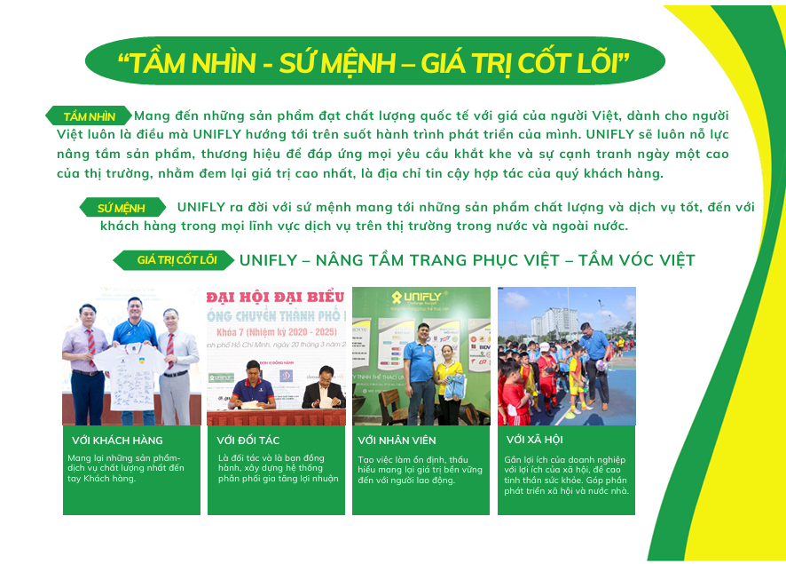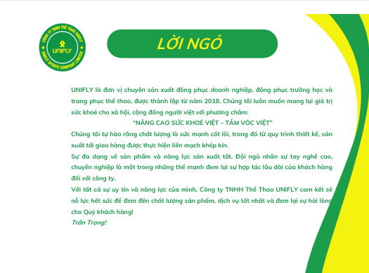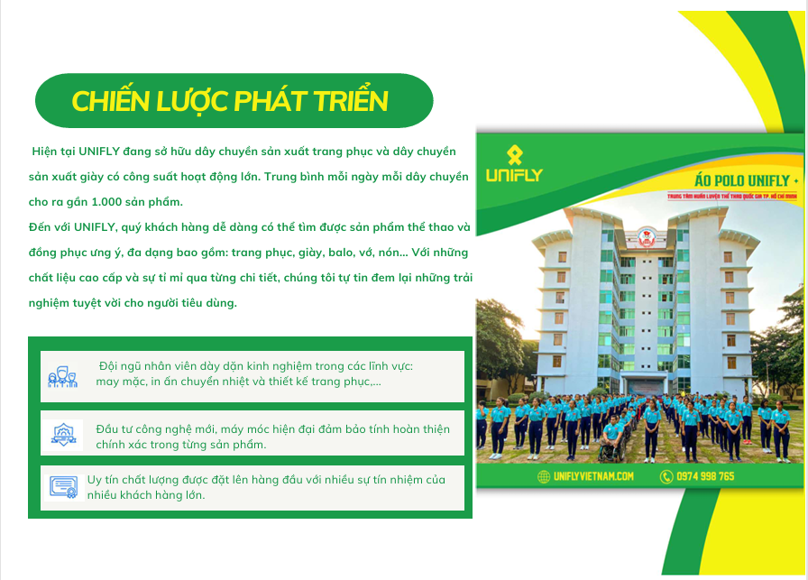 (NADS) - UNIFLY là đơn vị chuyên sản xuất đồng phục doanh nghiệp, đồng phục trường học và trang phục thể thao, được thành lập từ năm 2018. Chúng tôi luôn muốn mang lại giá trị sức khoẻ cho xã hội, cộng đồng người việt với phương châm "Nâng cao sức khỏe Việt - tầm vóc Việt".
