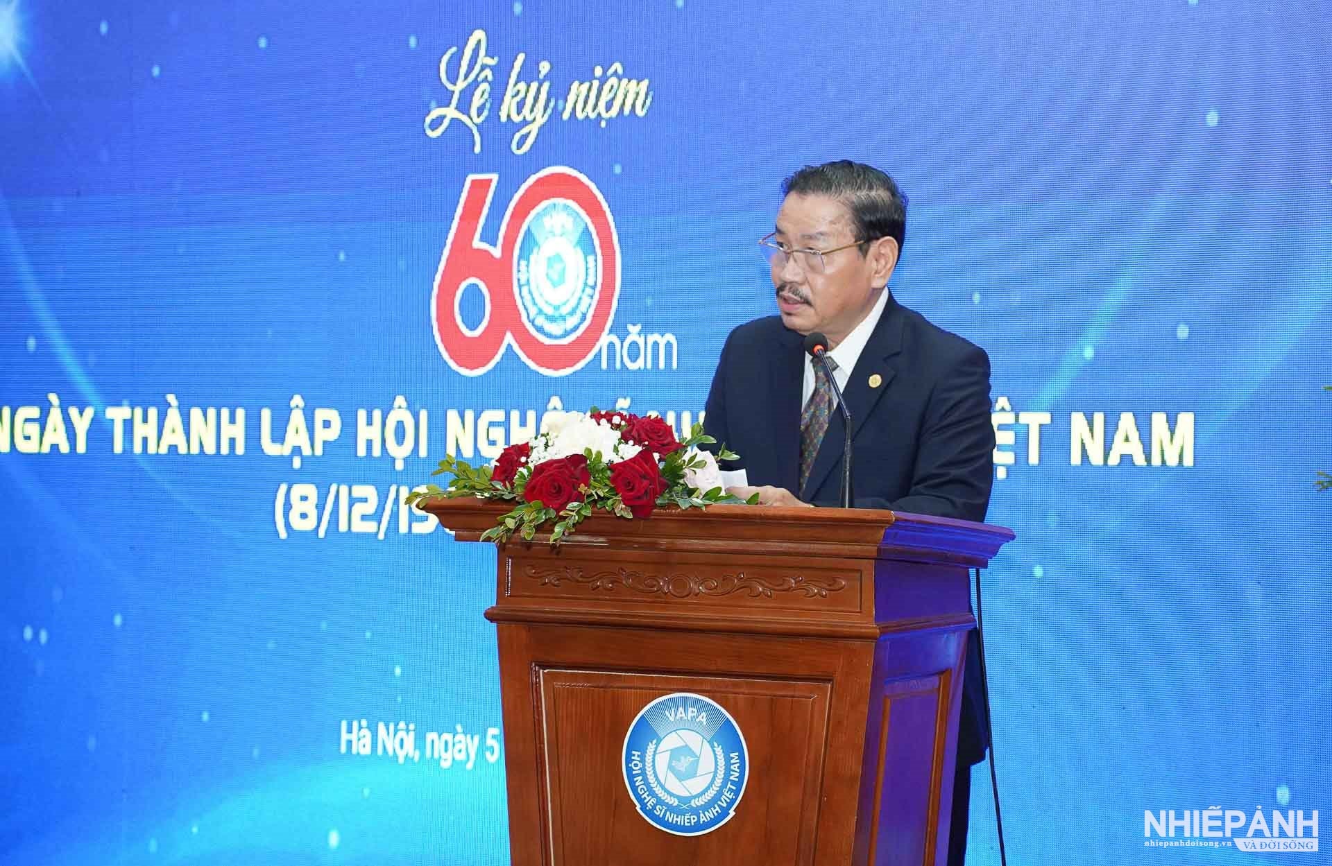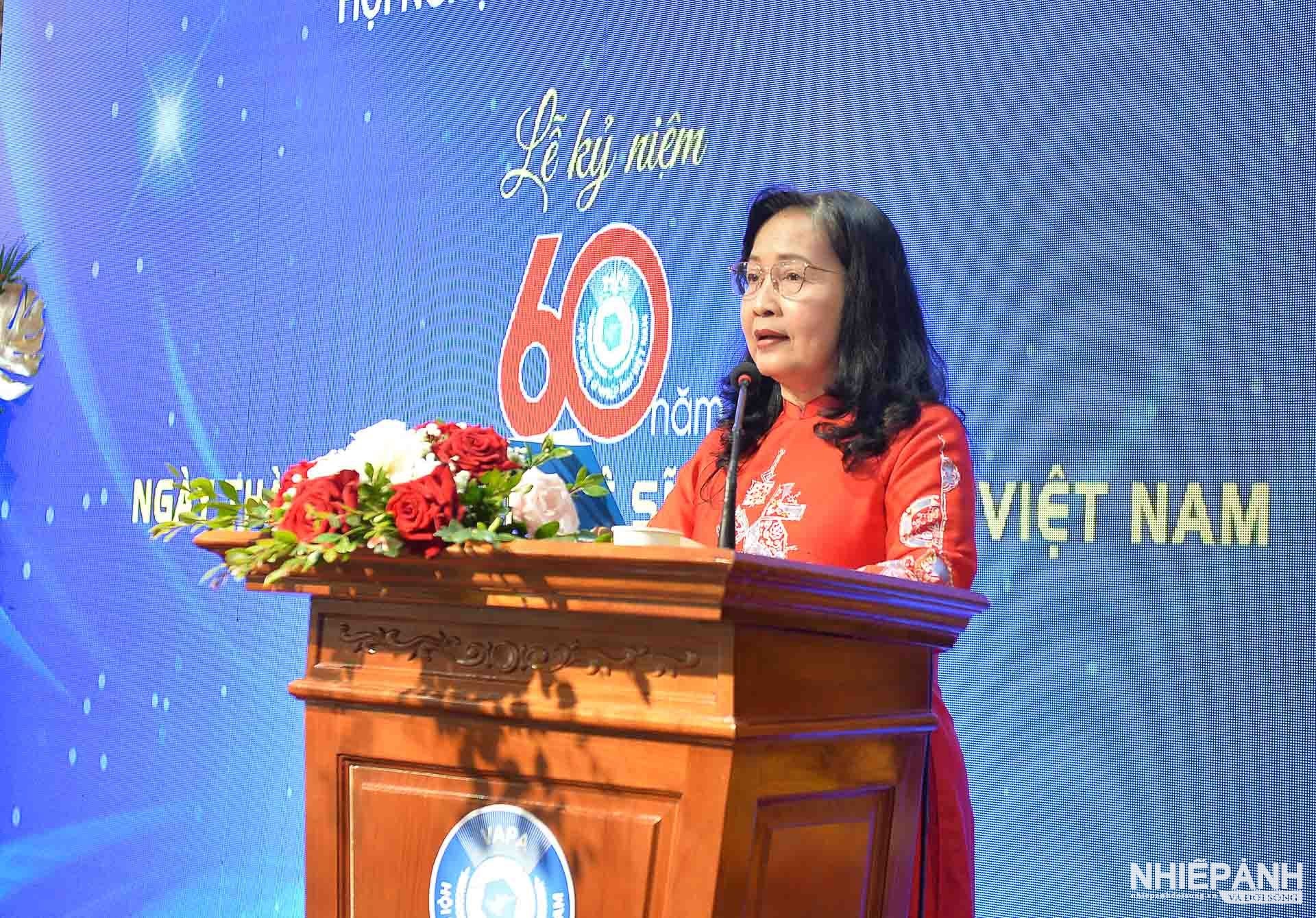 Trình bày diễn văn tại lễ kỷ niệm, Nghệ sĩ nhiếp ảnh Trần Thị Thu Đông, Phó Chủ tịch Liên hiệp các Hội Văn học Nghệ thuật Việt Nam, Chủ tịch Hội Nghệ sĩ Nhiếp ảnh Việt Nam, đã ôn lại chặng đường 60 năm xây dựng và phát triển của Hội.
