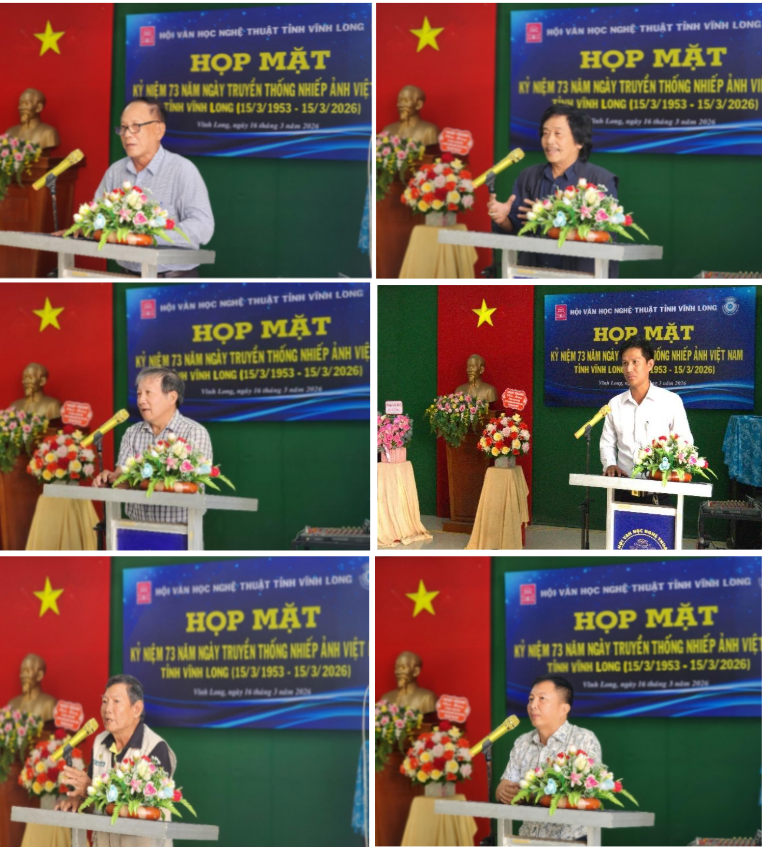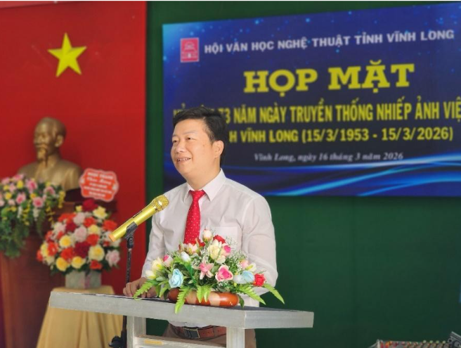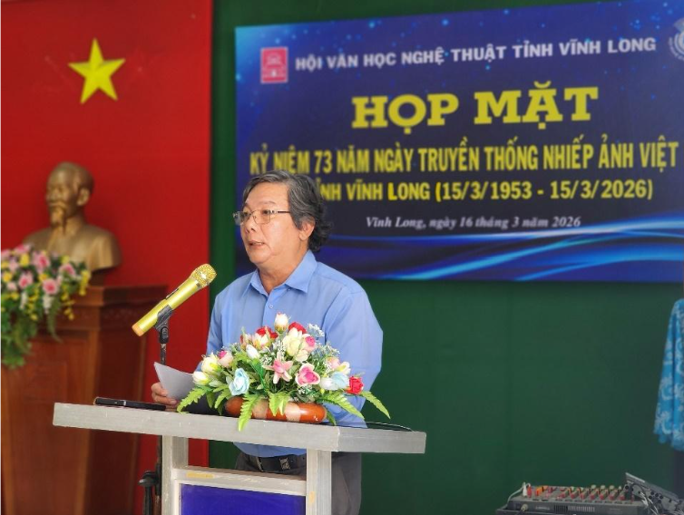Tại buổi họp mặt, ông Nguyễn Hùng Hậu, Phân hội trưởng Phân hội Nhiếp ảnh tỉnh Vĩnh Long đã phát biểu ôn lại truyền thống Ngày Nhiếp ảnh Việt Nam. Cách đây 73 năm, ngày 15/3/1953, tại Khu di tích Đồi Cọ (Thái Nguyên), Chủ tịch Hồ Chí Minh đã ký Sắc lệnh số 147/SL thành lập “Doanh nghiệp Quốc gia Chiếu bóng và Chụp ảnh Việt Nam”, đặt nền móng cho sự ra đời và phát triển của nền nhiếp ảnh cách mạng Việt Nam. Từ dấu mốc lịch sử đó, các thế hệ nghệ sĩ nhiếp ảnh đã đồng hành cùng dân tộc, ghi lại những hình ảnh chân thực về các cuộc kháng chiến, công cuộc xây dựng và bảo vệ Tổ quốc.